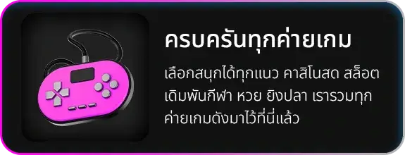 ตอบ : สล็อตออนไลน์จากค่ายดัง เกมคาสิโนสด บาคาร่า รูเล็ต ไฮโล เกมยิงปลา เดิมพันกีฬา และหวยออนไลน์